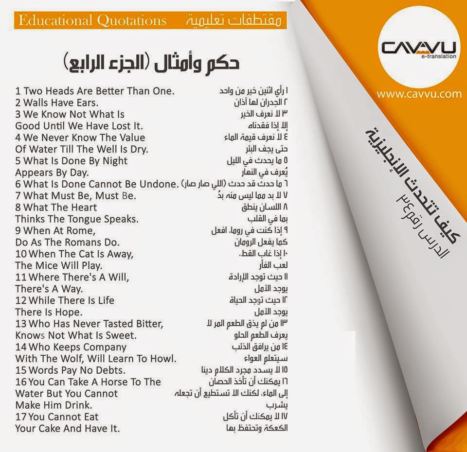 English proverbs with arabic translations حكم وأمثال بالانجليزي وما يقبلها بالعربية sentences.