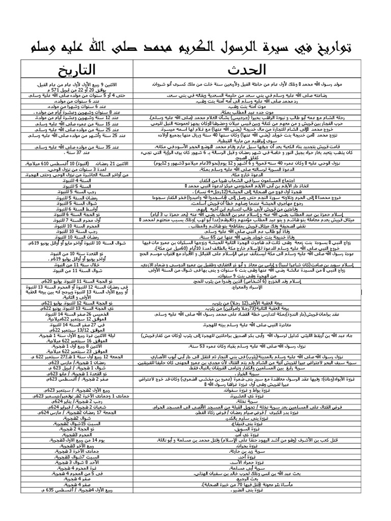 تواريخ في سيرة الرسول الكريم محمد صلى الله عليه وسلم Doc